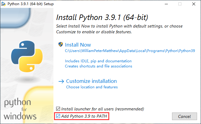 特别地,我们要在安装Python时选中Add Python 3.9 to PATH。